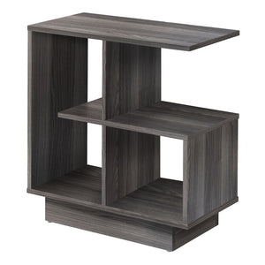 Show off this ultra-modern accent table in your living room, family room or den. Multiple open shelves provide ample storage and display space, while the unit itself is compact enough to fit into smaller spaces.