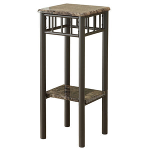 - 2-tier design with a marble-look tabletop and shelf. Display plants, photographs and other decorative objects.