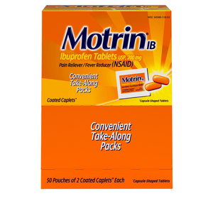 Motrin IB, Ibuprofen 200mg Tablets for Pain & Fever, 2 Tablets per Packet, 50 Packets per Box