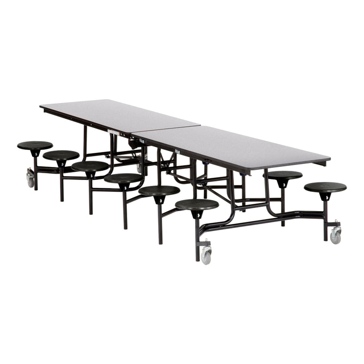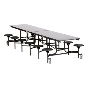 National Public Seating 12ft Rectangle Mobile Table With 12 Stools, Black/Gray Nebula