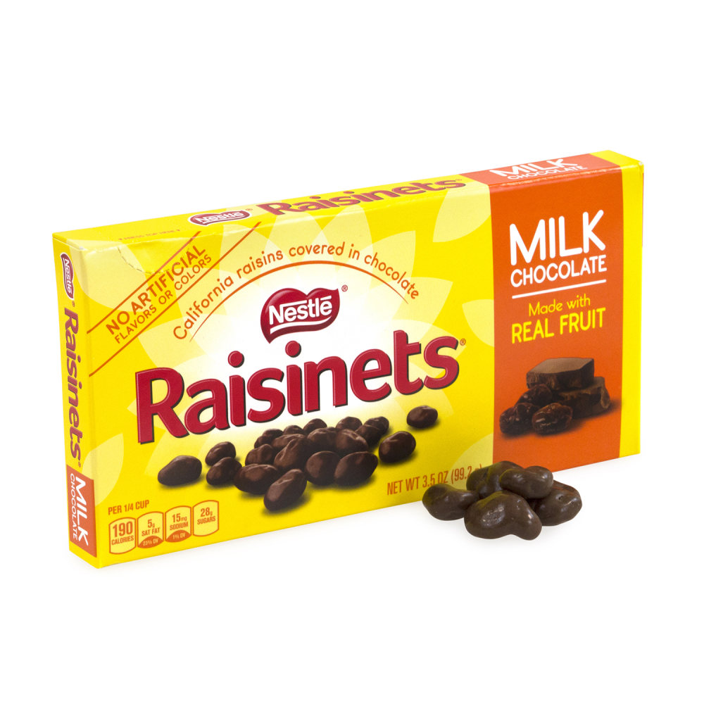 - California raisins dipped in milk chocolate.