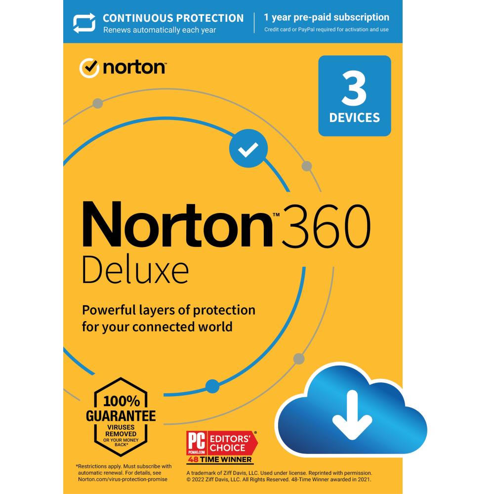 Norton 360 Deluxe, For 3 Devices, 1 Year Subscription, Windows, Download