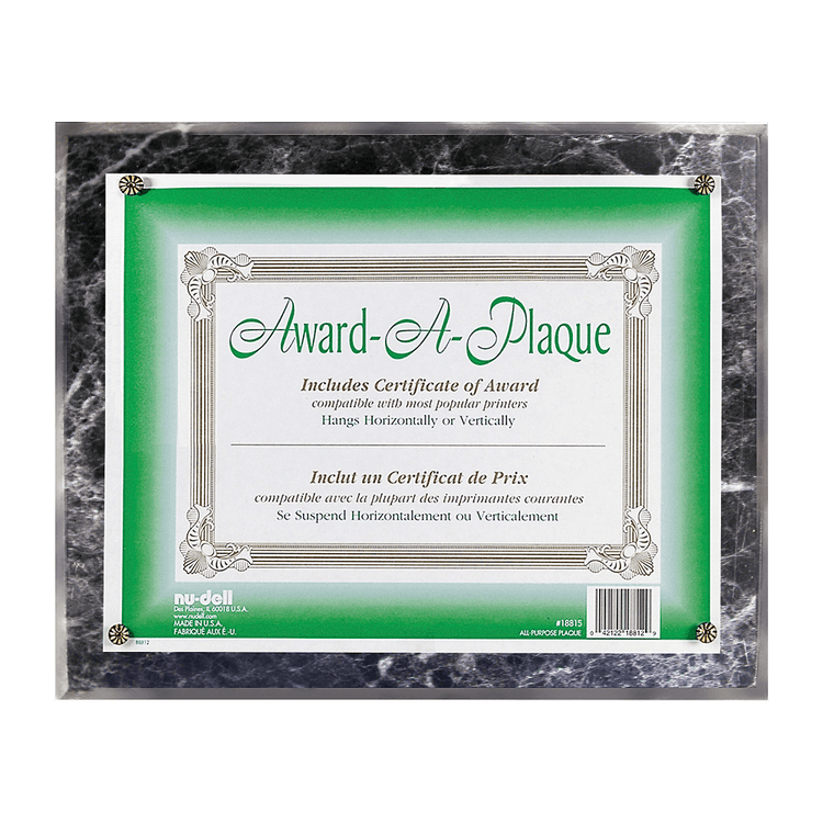 Nu-Dell Award-A-Plaque, 13in x 10 1/2in, Black Marble