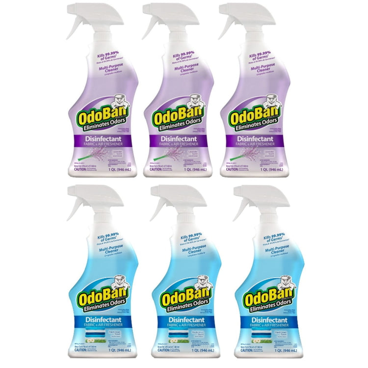 OdoBan Odor Eliminator Disinfectant Spray, Lavender And Fresh Linen Scent, 32 Oz, Case Of 6 Bottles