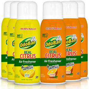 OdoBan Real Citrus Air Freshener 360 deg. Spray, Lemon And Orange, 10 Oz, Pack Of 6 Bottles