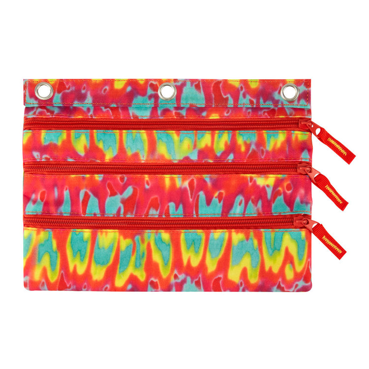 Office Depot Brand 3-Ring 3-Zipper Canvas Pencil Pouch, 10-1/4in x 7-3/4in, Chemical Reaction