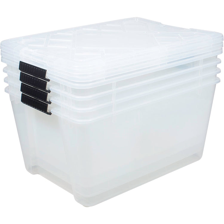 Office Depot Brand by GreenMade Instaview Storage Container With Latch Handles/Snap Lids, 45 Qt, 16-1/2in x 15-3/4in x 21-1/2in, Clear, Pack Of 4