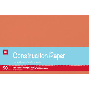 Office Depot Brand Construction Paper, 12in x 18in, 100% Recycled, Orange, Pack Of 50 Sheets