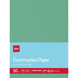 Office Depot Brand Construction Paper, 9in x 12in, 100% Recycled, Bright Green, Pack Of 50 Sheets