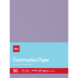 Office Depot Brand Construction Paper, 9in x 12in, 100% Recycled, Purple, Pack Of 50 Sheets