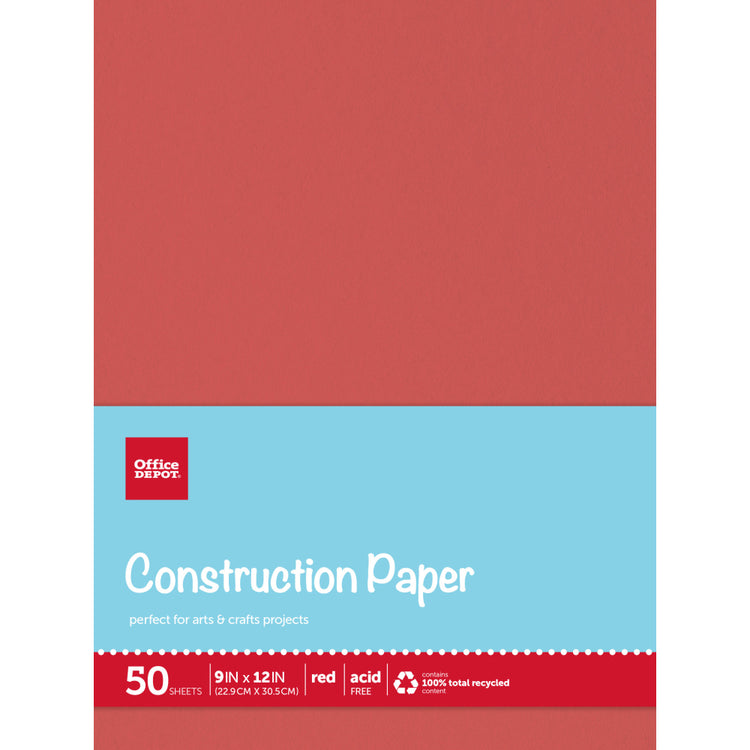 Office Depot Brand Construction Paper, 9in x 12in, 100% Recycled, Red, Pack Of 50 Sheets