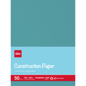 Office Depot Brand Construction Paper, 9in x 12in, 100% Recycled, Turquoise, Pack Of 50 Sheets