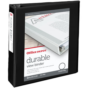 Office Depot Brand Durable View 3-Ring Binder, 2in Round Rings, Black