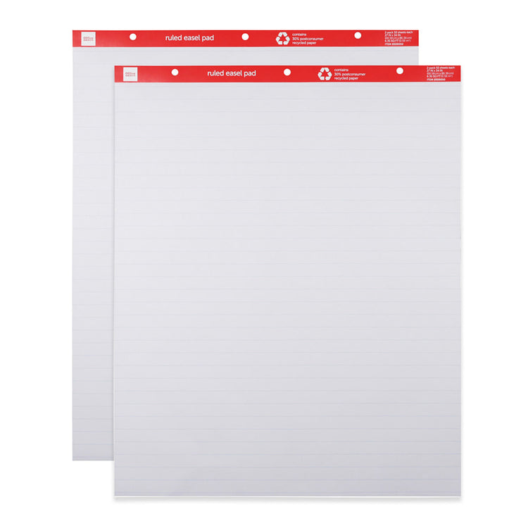Office Depot Brand Easel Pads, 27in x 34in, Ruled, 50 Sheets, 30% Recycled, White, Pack Of 2