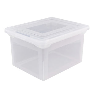 Tuck away all your important documents inside this roomy, stackable file tote. Thanks to the snap-tight lid, your archived files remain secure while in storage.