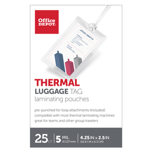 With these easy-to-use Office Depot Brand laminating pouches, you can safely protect your luggage tags to help ensure your luggage's proper arrival at your final destination.
