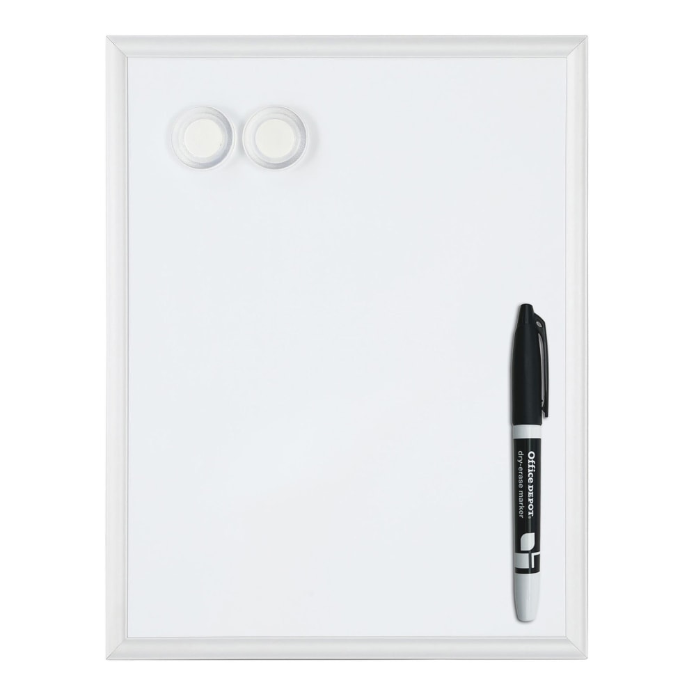 The Office Depot Brand Mini Magnetic Dry-Erase Board is a versatile tool to have in your home, office or cubicle. The magnetic steel board offers a smooth writing surface, so you can easily jot down reminders, ideas and to-do lists, and it can double as a bulletin board to hang up papers and photos with compatible magnets. It also boasts a compact size to comfortably fit into most spaces.