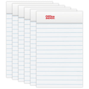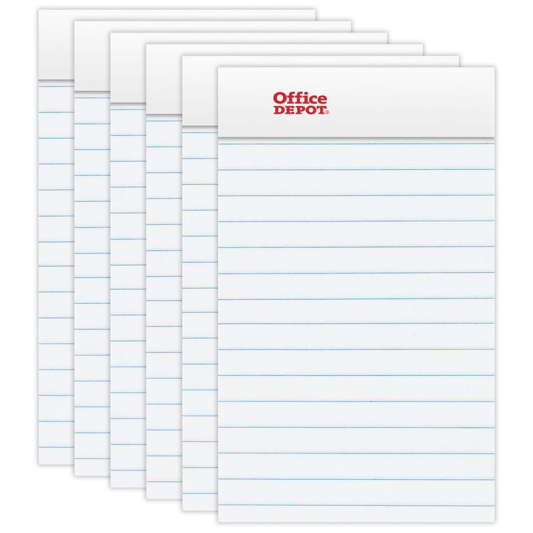 Office Depot Brand Mini Writing Pads, 3in x 5in, College Ruled, 50 Sheets, White, Pack Of 6 Pads