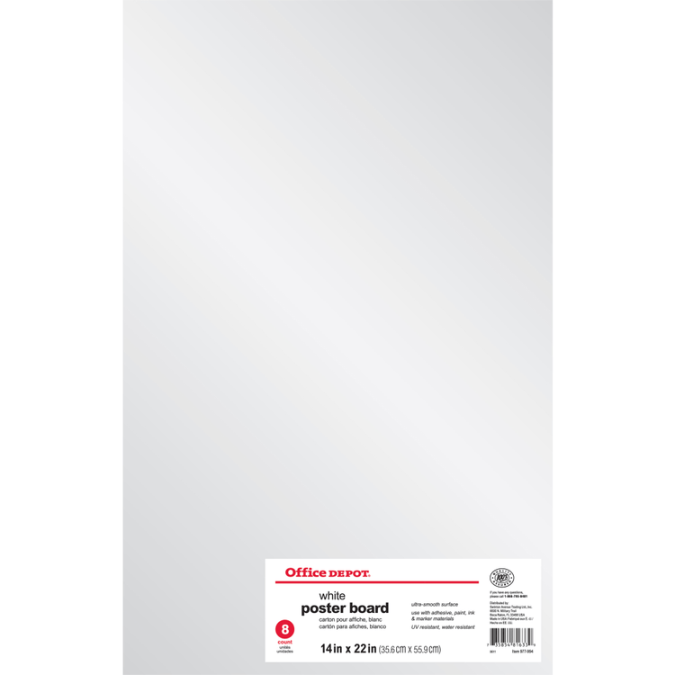 Office Depot Brand Poster Boards, 14in x 22in, White, Pack Of 8