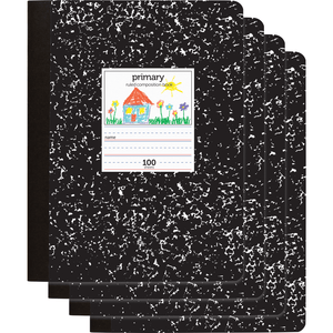 Office Depot Brand Primary Composition Books, 7-1/2in x 9-3/4in, Unruled/Primary Ruled, Black, 100 Sheets Per Pad, Pack Of 4 Books