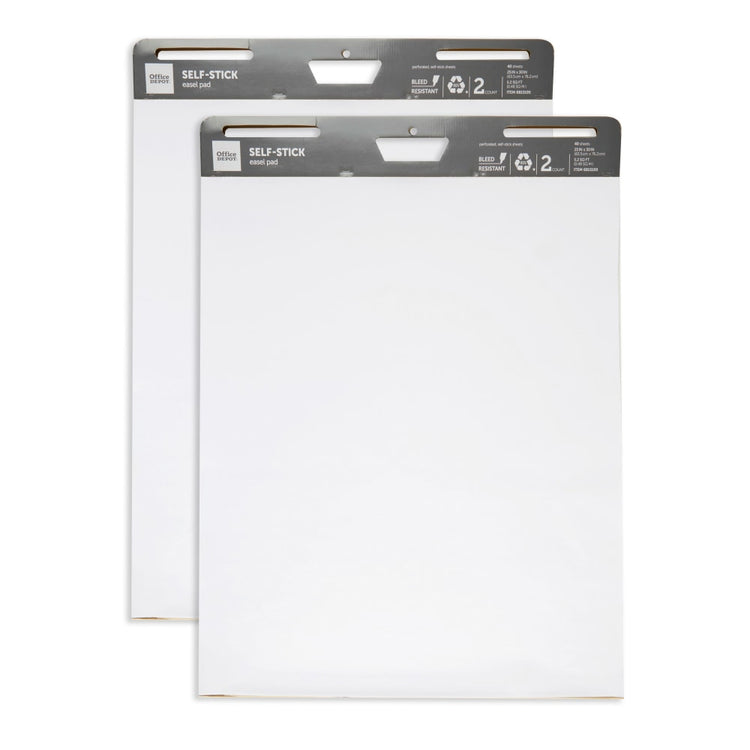 Office Depot Brand Self-Stick Easel Pads, 25in x 30in, 40 Sheets, 80% Recycled, White, Pack Of 2 Pads