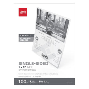 Protect a variety of items, such as photos, business cards and documents, up to 8-1/2" x 11" with the Single-Sided Laminating Sheets from Office Depot. The self-sealing laminating sheets do not require any special equipment or machines and can be cut to suit your preferred size.
