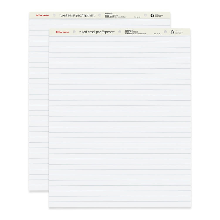 Office Depot Brand Standard Easel Pads, 27in x 34in, 30% Recycled, White, 50 Sheets, Pack Of 2