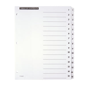 Office Depot Brand Table Of Contents Customizable Index With Preprinted Tabs, White, Numbered 1-15