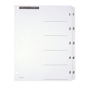 Office Depot Brand Table Of Contents Customizable Index With Preprinted Tabs, White, Numbered 1-5