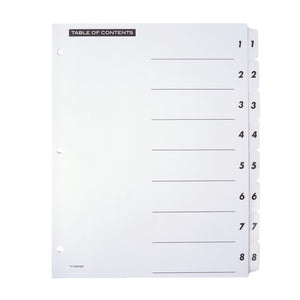Office Depot Brand Table Of Contents Customizable Index With Preprinted Tabs, White, Numbered 1-8