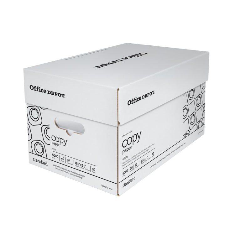Office Depot Copy Paper, White, Letter (8.5in x 11in), 5000 Sheets Per Case, 20 Lb, 92 Brightness, Case Of 10 Reams