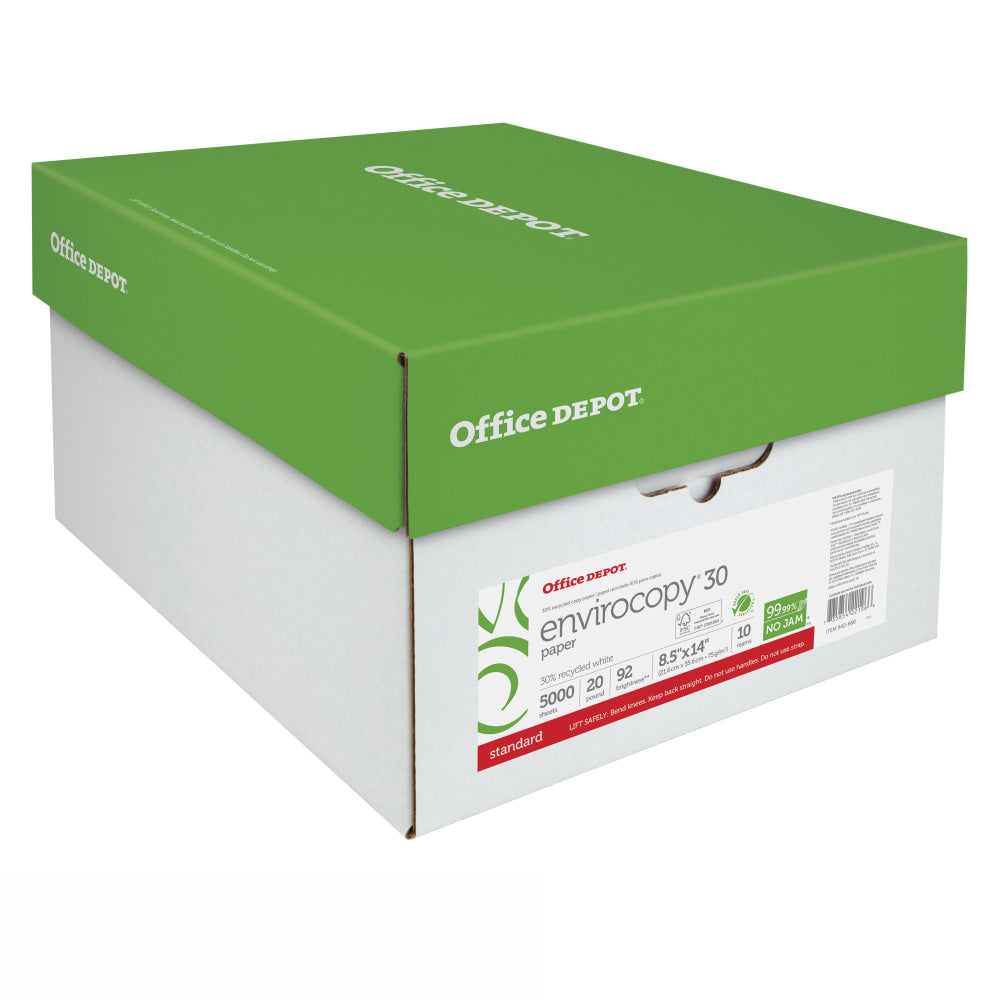 - Office Depot brand EnviroCopy 30 paper is legal size and FSC-certified with 500 sheets in each of 10 reams.