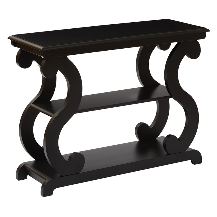 Set the Office Star Ashland Console Table in your living space to create an inviting area. The table offers 3 shelves to help you organize accessories. The curves, sharp angles and scroll design bring a touch of traditional style that is sure to get compliments.