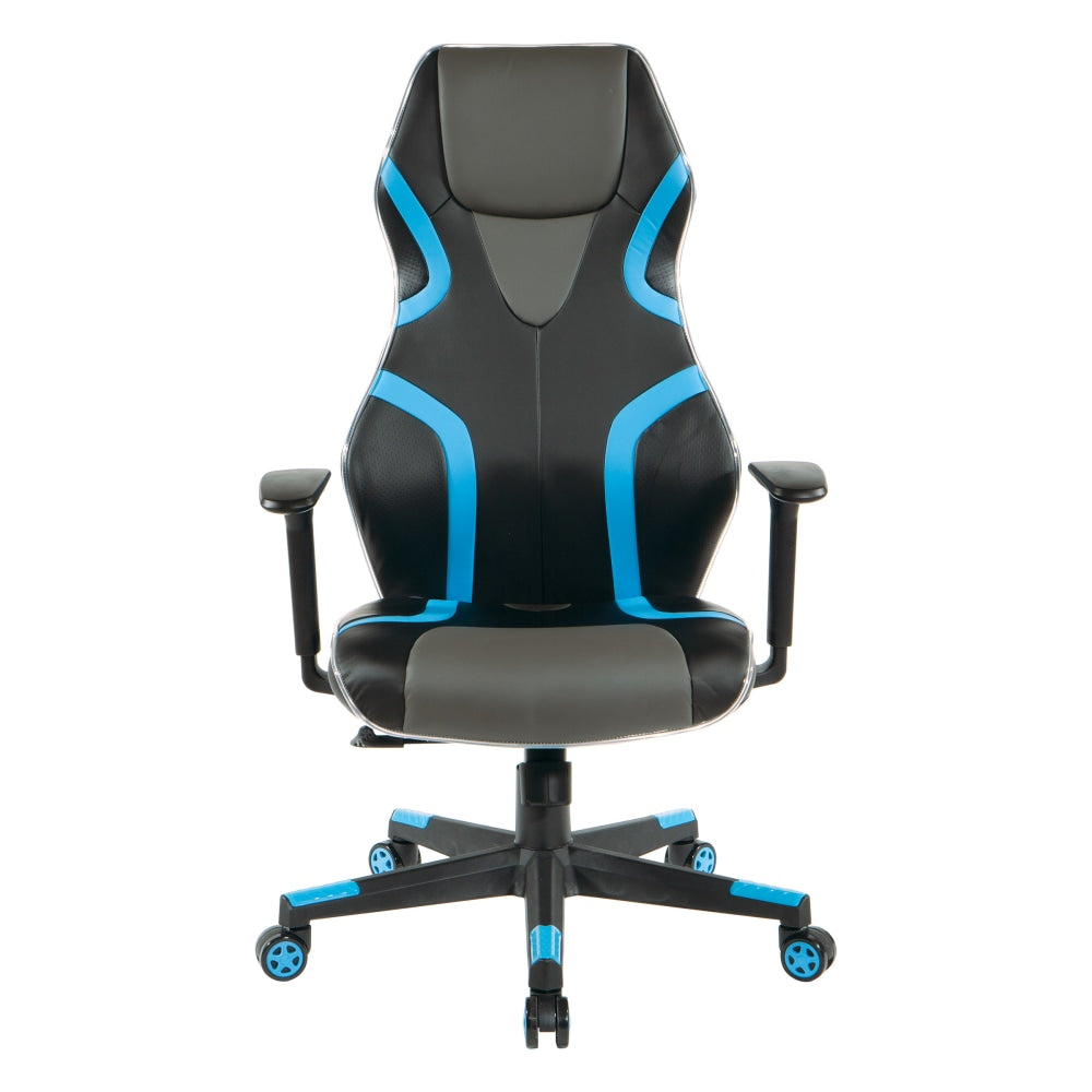 Office Star Rogue Faux Leather Gaming Chair, Black/Blue