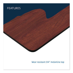 Functional, durable mobile training tables easily reconfigure to improve meeting productivity. Wear-resistant melamine top resists moisture and hot/cold temperatures. Includes perforated steel modesty panel. Strong, 1-1/2" offset dual legs for maximum legroom. Two locking casters and two non-locking casters for improved navigation over transoms.