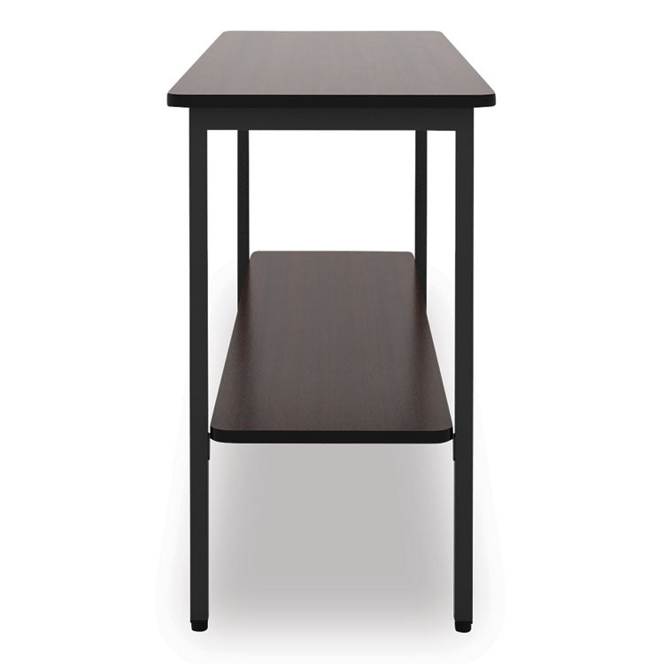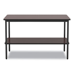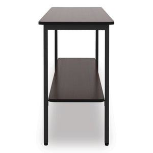 OfficeWorks One-Shelf Utility Table, Rectangular, 47.25" x 17.7" x 29.5", Walnut Top, Black Base/Legs