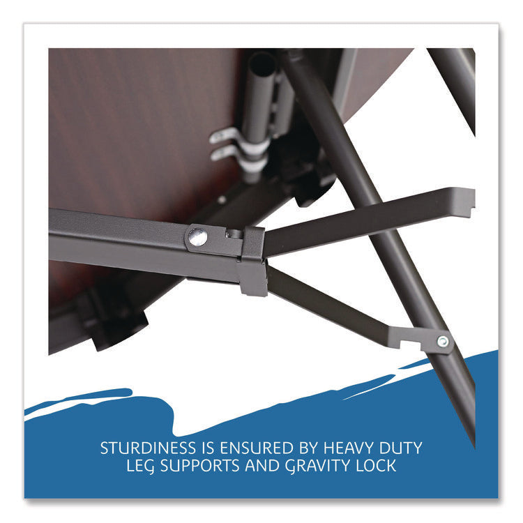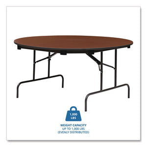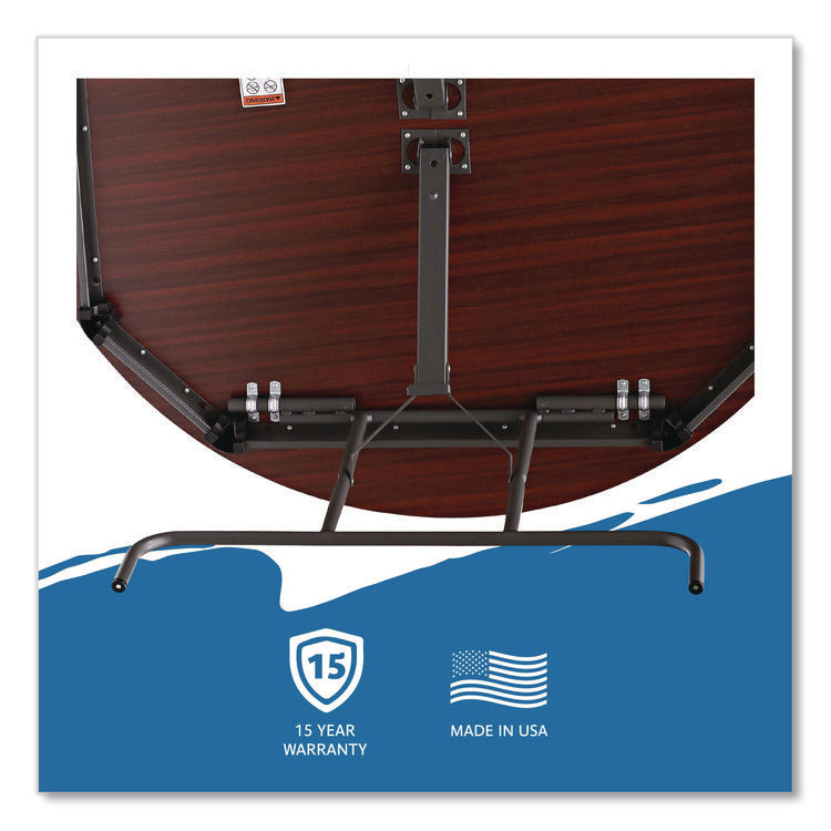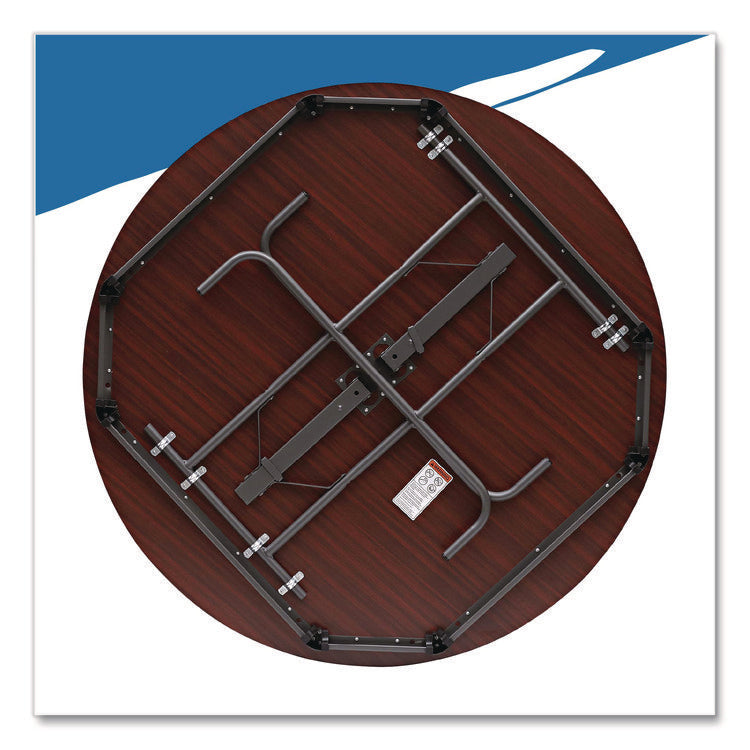 OfficeWorks Wood Folding Table, Round, 60" x 29", Mahogany Top, Gray Base