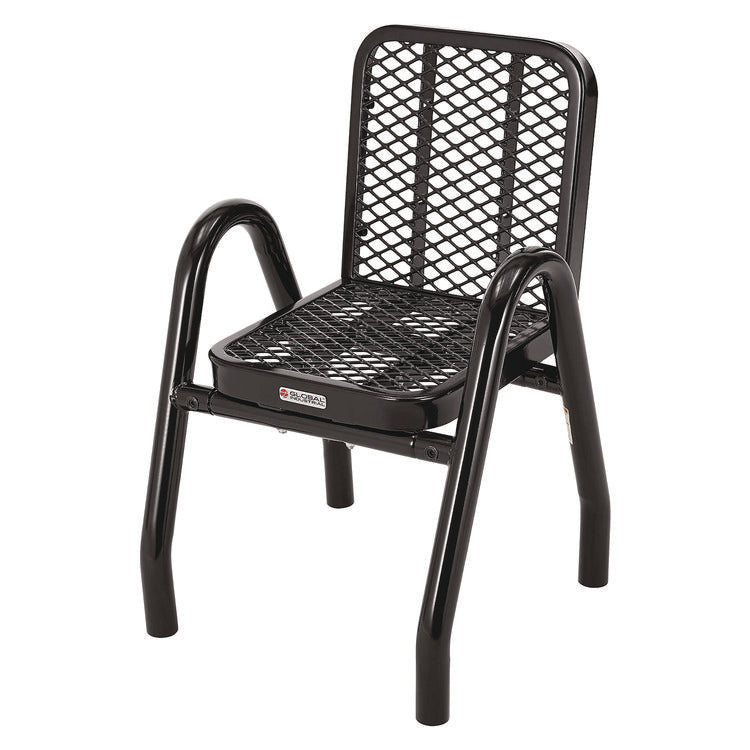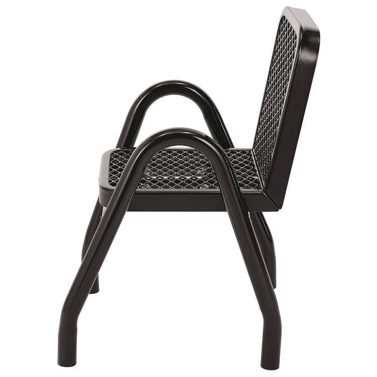 Provide unique style and comfortable outdoor dining for guests with this outdoor dining set. Ideal for restaurants, bars, outdoor food courts, public parks and streateries! Thermoplastic coating resists fading, mold and vandalism. High-gloss surface is designed to stay cool under the hot sun. 36" tabletop includes an opening to accept an umbrella with a pole of up to 1.5" diameter. The sturdy pedestal base features a black textured powder coat finish that resists corrosion. This table and chair set is easy to clean and will ensure maintenance-free durability through years of high-traffic usage. Easy assembly.