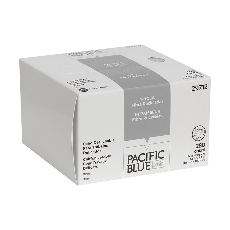 PACIFIC BLUE BASIC DISPOSABLE DELICATE TASK WIPERS, 4.5in x 7.9in, Box Of 280 Towels, 100% Recycled, White