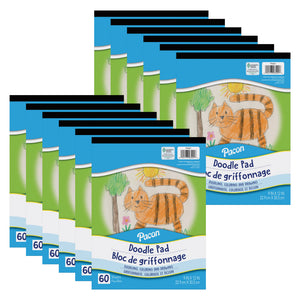 Pacon Doodle Pads, 9in x 12in, 60 Sheets, White, Pack Of 12 Pads