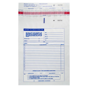Help protect your business and your patients valuables. Patient valuable bags are necessary in many locations, for out-patient surgeries, ambulances and prisons to store a patients small valuables like money, rings, wallet and jewelry. These tamper evident bags with keep your patient valuables safe, dry and help you document their belongings.