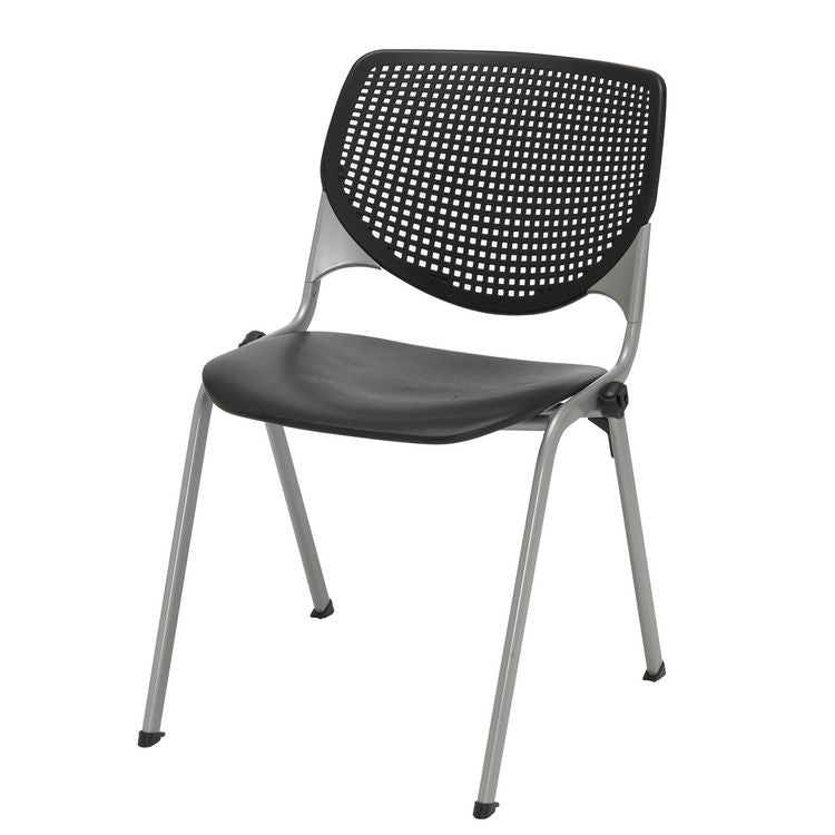 - Durable and easy to clean polypropylene seat and perforated back provide comfort and allows air to flow through with powder coated oval steel tube frame.