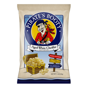 Enjoy a cheesy, wholesome snack courtesy of Pirate's Booty White Cheddar Rice/Corn Puffs. Each single-serve bag packs in flavor and crunch.