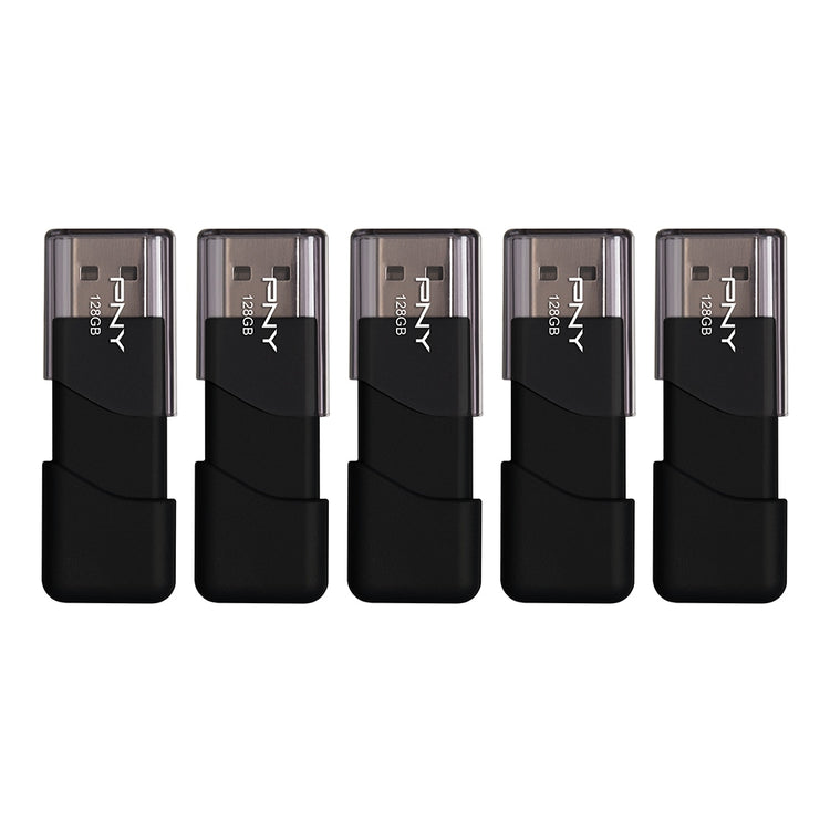 PNY Attache 3 USB 2.0 Flash Drives, 128GB, Black, Pack Of 5 Drives
