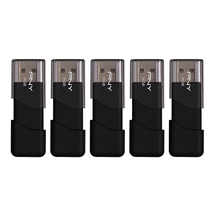 PNY Attache 3 USB 2.0 Flash Drives, 16GB, Black, Pack of 5 Flash Drives