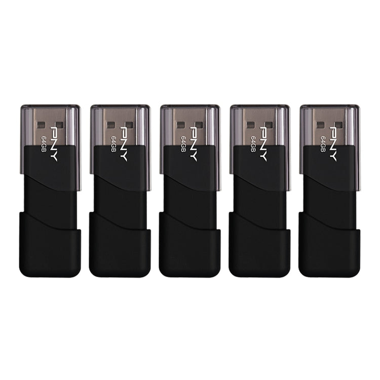 PNY Attache 3 USB 2.0 Flash Drives, 64GB, Black, Pack Of 5 Flash Drives