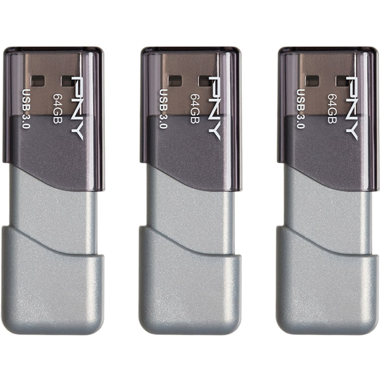 PNY Turbo Attache 3 USB 3.0 Flash Drive, 64 GB, Silver, Pack Of 3