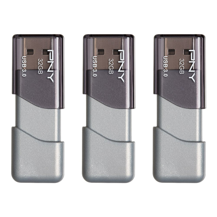 PNY Turbo Attache 3 USB 3.0 Flash Drives, 32GB, Silver, Pack Of 3 Drives