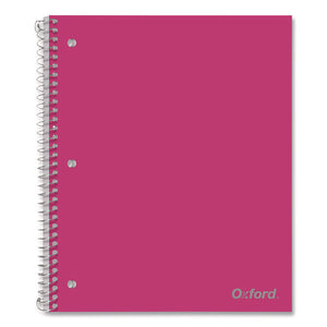 This Oxford one-subject poly notebook comes in bright colors with front pocket storage. The notebook is perforated, three-hole punched, and spiral-bound with a strong no-snag coil. Comes in assorted colors.
