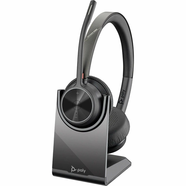 Poly Voyager 4320 Headset With Charge Stand - Stereo, Mono - Wired/Wireless - Bluetooth - 164 ft - 20 Hz - 20 kHz - Over-the-head - Binaural - Ear-cup - 4.92 ft Cable - Electret Condenser, MEMS Technology Microphone - Noise Canceling